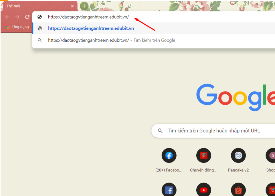 - Bước 1: Truy cập vào đường link trang chủ trường đào tạo online https://daotaogvtienganhtreem.edubit.vn/