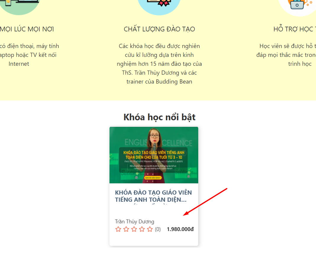 - Bước 6: Sau khi Đăng nhập vào trang chủ, bạn kéo xuống dưới và click vào khóa học bạn muốn mua.