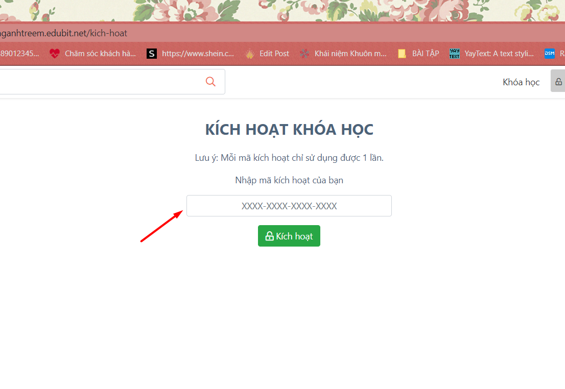 Sau khi bạn đăng ký và thanh toán thành công, hệ thống sẽ gửi vào mail của bạn 1 MÃ KÍCH HOẠT kèm nội dung hướng dẫn sử dụng mã. Bạn copy (Ctrl + C) mã đó và thực hiện các bước sau: